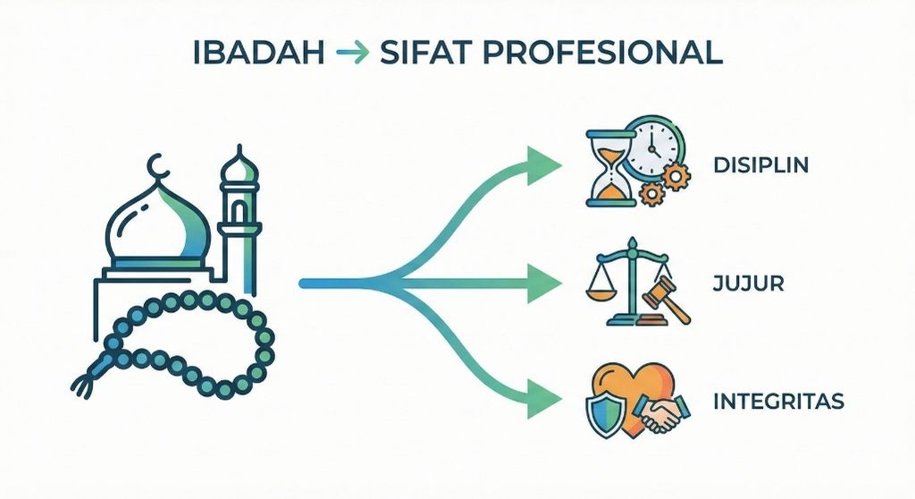 Ibadah adalah cermin integritas; perbaiki kualitas ibadah Anda, maka kualitas profesionalitas Anda akan mengikutinya.