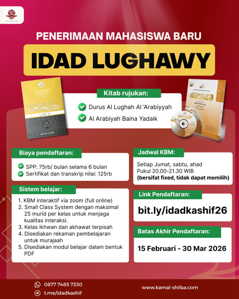 Pertama-tama, apakah Anda merasa kesulitan memahami teks Arab meski sudah mencoba belajar? Faktanya, banyak orang menghadapi kendala ini karena ketiadaan metode yang sistematis. Oleh karena itu, Kamal Al Shifaa menghadirkan solusi tepat melalui Program Bahasa Arab Intensif atau Idad Lughawy KASHIF.