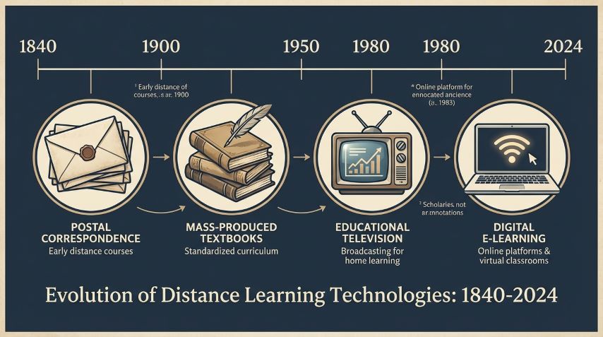 Pendidikan jarak jauh bukan produk era digital. Sejarahnya dapat dilacak hingga abad ke-19, ketika Sir Isaac Pitman mulai mengirimkan materi pembelajaran melalui pos di Inggris pada tahun 1840. Universitas London bahkan telah menawarkan program gelar eksternal sejak 1858, memungkinkan mahasiswa memperoleh kualifikasi akademik tanpa pernah menginjakkan kaki di kampus utama.